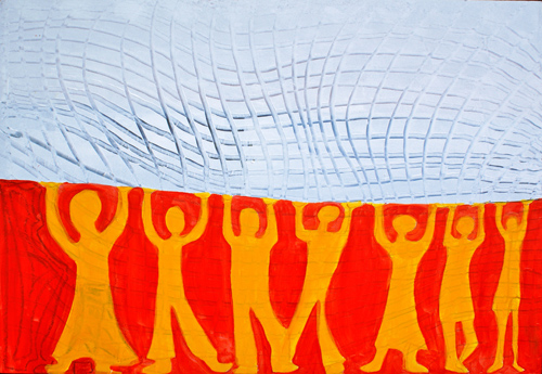 fliesst die Thematik ihrer Skulpturen auch in ihre Bilder